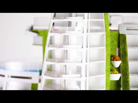 This architectural model was designed for an architecture competition in Nice, France, and is an office building. For presentation in front of the commission, a conceptual model was required to highlight volumetric and the fact that the project promotes ecological architecture.
